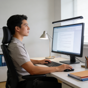 久坐小贴士:每坐 1 小时起身活动 2 分钟,做仰头、转头的轻柔拉伸;电脑屏幕高度与视线平齐,避免低头看屏幕。