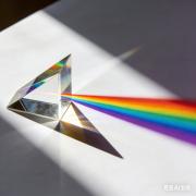 三棱镜实验的原理与此一致,让白光穿过三棱镜,就能清晰看到七色光带,完美复刻彩虹的形成逻辑。
