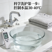 羊毛纤维含角蛋白,遇高温、碱性物质易收缩变形,核心洗护关键在于严控水温和选对洗涤剂。水温需保持在30℃以下(最佳 25-30℃),接近人体体温且不烫手,既能溶解污渍,又能避免纤维结构破坏。切勿用热水浸泡或冲洗,也忌冷热交替,否则会加速羊毛收缩、变硬。