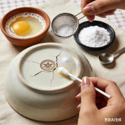 陶瓷碗轻微裂痕易漏水,蛋清中的蛋白质凝固后具有粘性,小苏打可增强硬度,二者混合形成天然粘合剂,能填充裂痕、临时加固,适合非承重碗具应急修复。