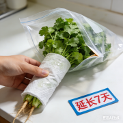 香菜易发黄枯萎,是因水分流失过快、呼吸作用旺盛。湿纸巾能持续提供水分,保持叶片湿润;密封袋控湿,减少水分蒸发,同时抑制呼吸作用,延缓老化。