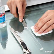 用美工刀刀刃贴近表面,轻轻刮除大块玻璃胶(力度轻柔,避免划伤表面)